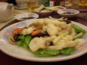 第三碟菜:墨魚炒菜。它應該有一個較優雅的名字,可是筆者已經忘記了。味道一般,沒有驚喜。