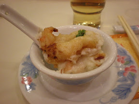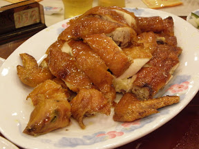 第六碟菜:脆皮炸子雞。這也是傳統菜式之一。很多粵菜菜館都仍有此菜式。這隻雞體型較大,幸肥肉不太多,對於不太喜歡炸雞的筆者來說,味道不錯。
