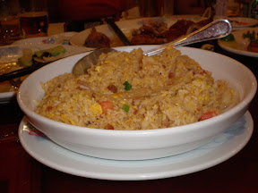 第七碟菜:炒飯。雖然是普通菜式,但是味道不錯。可是,炒飯似乎下多了水,沒有傳統炒飯的蛋包飯的效果。正如食家蔡欄才說:要看一間菜館的廚師出色與否,看他的炒飯及炒河便知一二。如以此為評分標準,這菜館只可得七十分而已。