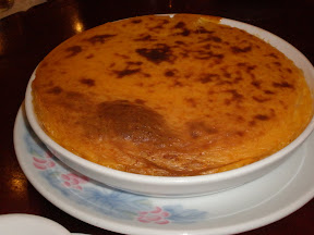 特別安排:焗蓮蓉西米布甸。班長羅倫斯大聲地叫道:不是啦,吃蓮蓉做甜品,中秋都快來了,會吃很多啦。筆者不禁「頂撞」了一句:你有沒有看網上食評,人家最出名就是這甜品,要一天前預訂的。其餘的女孩子,均開心地拍掌:好選擇,這是一碟好菜。結果:白蓮蓉布甸混入西米布甸內,布甸淡淡的焦糖,賣相好看又不太甜,不負眾望。(註:對不起啦班長,連你號稱最不會逆你意的筆者都頂撞了一下,記緊下次上網看看openrice.com才批評吧!哈哈!)