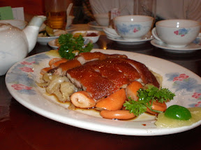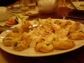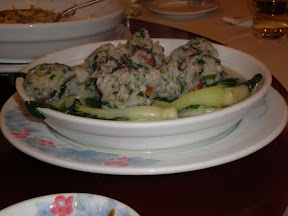 驚喜之選:上湯白菜鯪魚球。這是加單菜式。也許,我們都是吃得多的人,原以為女孩子多,一個十人套餐足夠填飽十三人的肚子。結果,再叫兩碟菜。這是筆者偷看鄰桌相信是華人公司宴請從外國而來的老外客人後,建議下單的菜。味道很好,鯪魚肉含花生、髮菜(註:不知道是真還是A貨)及蝦米。咬入口脆脆的,很多吃。再看菜牌,這是特色菜之一。原來偷看鄰桌叫菜是一個不錯的選擇,哈哈!