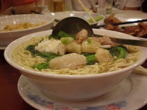 加單項目二:上雜湯麵。班長要求吃湯米,可是菜館只有湯麵,只好在餐牌上叫做貴的湯麵。它有一個奇怪的名字-上雜湯麵。再三詢問侍應是否那些內含動物內臟的東西,侍應說用點疑惑眼神說:好似不是。結果,原來是內含大蝦,魷魚片,清菜等湯麵,味道不俗。